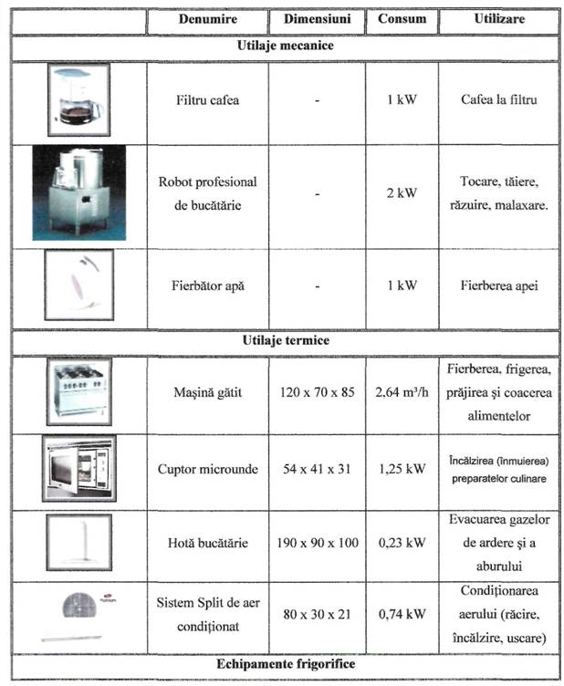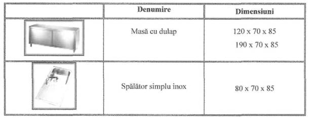 de cazare. Lista utilajelor, echipamentelor si mobilierului