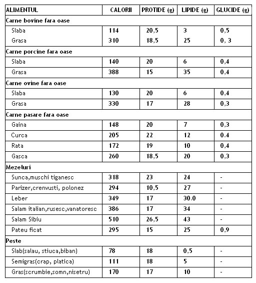 crescut fara de glucide si proteine (vezi tabelul de mai jos). Cel de-al doilea