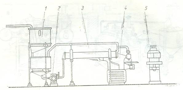 Transportul de la buncare la liniile de prelucrare se realizeaza hidraulic, prin jgheaburi de tabla. Pentru transportul hidraulic al unui kilogram de produs sunt necesari 2,5 - 4 litri de apa, care poate fi obtinuta de la condensatoarele barometrice.