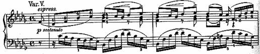 În variatiunea a V-a apare tonalitatea si bemol minor care reprezinta omonima minora a tonalitatii de baza.