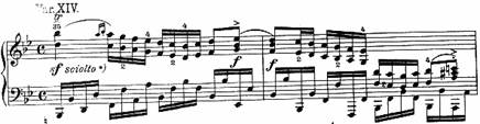 Variatiunea a XIV-a, reprezinta un contrast mare de tonalitate, tempo, scriitura, caracter.