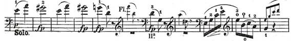 Desi la orchestra apar motive ale temei I, tema a II-a reprezinta un element nou executat de violoncel cu raspunsul prompt al orchestrei.