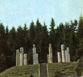 de umanitate, din sanctuarele dacice sau din spatiile de evocare brancusiene. Cele 12 coloane, dispuse circular, reprezinta maramureseni sau