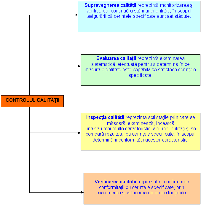 Controlul calitatii: evaluarea calitatii, supravegherea calitatii, inspectia calitatii, verificarea calitatii |