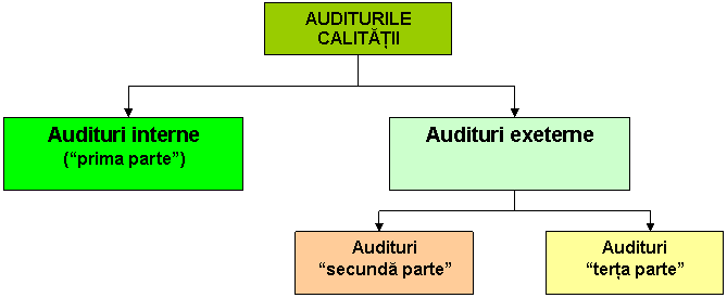 Tipuri de audit (auditul produsului, auditulprocesului/ serviciului, auditul sistemului calitatii, audituri interne/ externe |