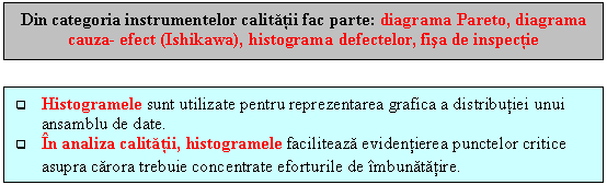 Instrumentele calitatii ( diagrama Pareto, diagrama Ishikawa,histograma defectelor, fise de inspectie |