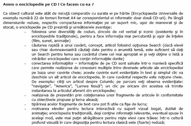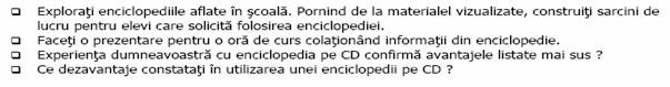 . CD-uri cu enciclopedii, accesibila atât profesorilor cât si elevilor;