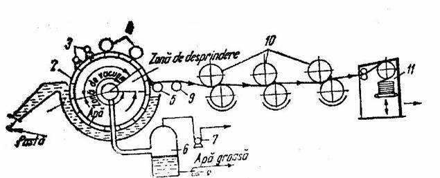 Schema principala a masinii de fabricat hârtie cu sita cilindrica.