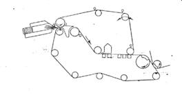 Latura de sus a sitei aluneca pe cutia de formare 3, pe valturile registre 4 14514l1116o si pe cutiile sugare 5, iar pe latura de jos, pe valturile de sustinere 7 si pe valturile de întindere 8.