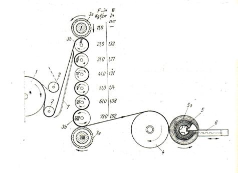 3-tambur înfasurator de lucru; 4 14514l1116o -hârtia de la calandru