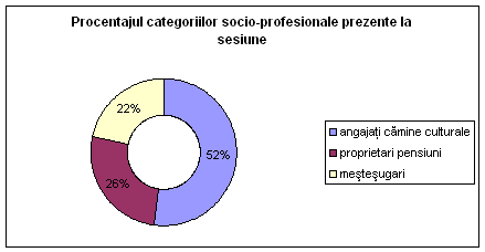 Subiectii prezenti au fost in numar de 24 din care 12 angajati ai caselor si caminelor culturale din: Negreni, Poieni, Gilau, Aschileu, Tritenii de Jos, Viisoara, Garbau, Huedin, Rasca, Mociu, Frata, Iclod; 6 proprietari de pensiuni din Sancrai - 2 persoane, Belis - 3 persoane si Gilau; 5 mestesugari: Palfi Csaba, Gavris Elvira, Sallai Andrei, Rus Elisabeta si Dirjan Elena.