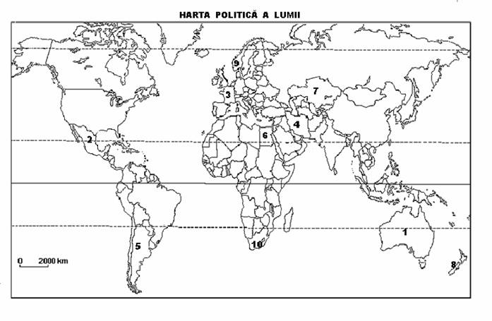 VI. Analizati harta de mai jos si scrieti: numele statelor marcate de la 1 la 10; 10p