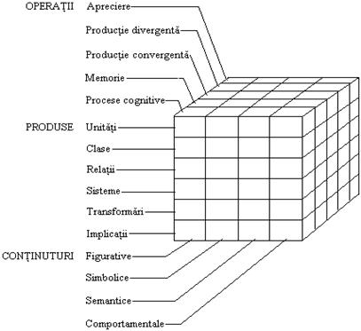 Desi nu reiese daca ii apartine sau daca este doar o preluare, aplicatia de mai sus reprezinta una dintre rarisimele lamuriri pe situatii pedagogice concrete, la ingeniosul cub al lui Guilford. Si, de asemenea, in ciuda vizarii doar a trei diviziuni de pe una din dimensiunile cubului, ilustrarea de mai sus este un sprijin real pentru adancirea cat de cat a intelegerii demersului atat de complicat al autorului american.
