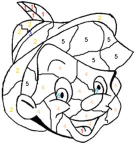 5. Coloreaza desenul: 1 (rosu) 2 (galben-auriu) 3 (albastru inchis) 4 (bej) 5 (negru) 6 (albastru deschis)