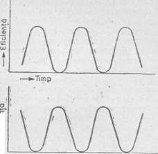 Comparīnd graficul a cu graficul b, observam ca la un moment oarecare t modalitatea expozitiva de predare este mai putin eficienta decīt predarea cu ajutorul mijloacelor tehnice. Insa, daca efectuam suma valorilor maxime si minime de eficienta la fiecare lectie īn parte, nu vom obtine diferente semnificative īntre cele doua modalitati de predare. Deci, problema se pune nu īn a postula superioritatea unei modalitati de predare īn sine,