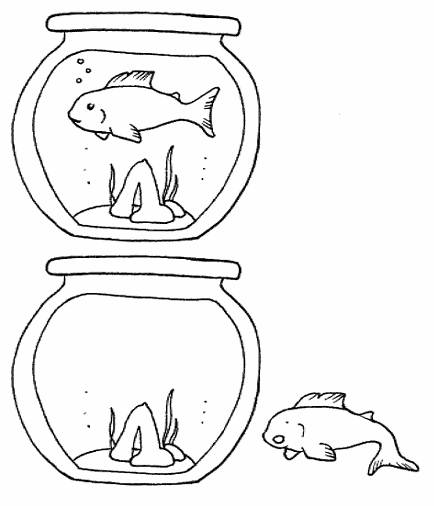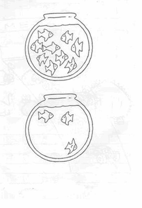 Coloreaza sau decupeaza vasul in care sunt mai putini pesti: