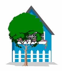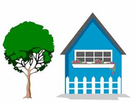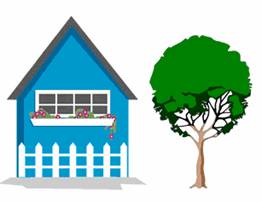 Specificati in fiecare caz pozitia copacului in raport cu casa: