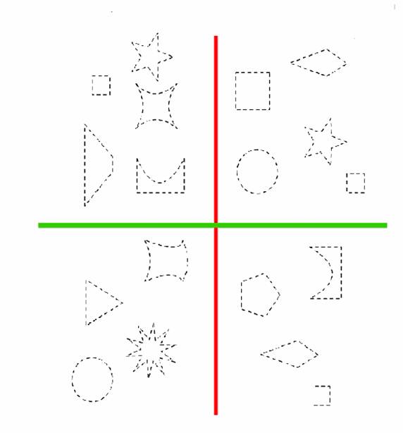 Coloreaza patru imagini aflate in stanga linei rosii si deasupra celei verzi;