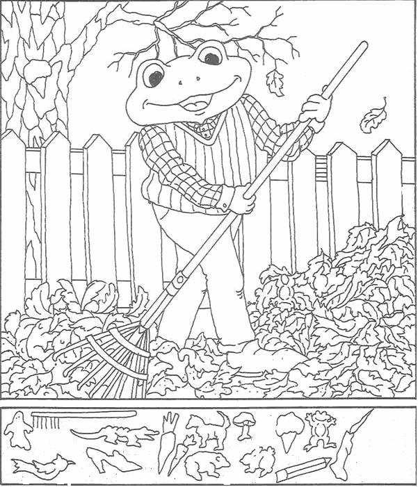 Imaginile mici de sub ilustratia mare se ascund in curtea broscoiului. Dar unde?