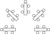 -Proiectati sarcini de lucru în care sa grupati elevii si mobilierul. Puteti folosi una dintre schemele de organizare a spatiului de lucru din figurile alaturate sau alt mod de aranjare care vi se pare potrivit.