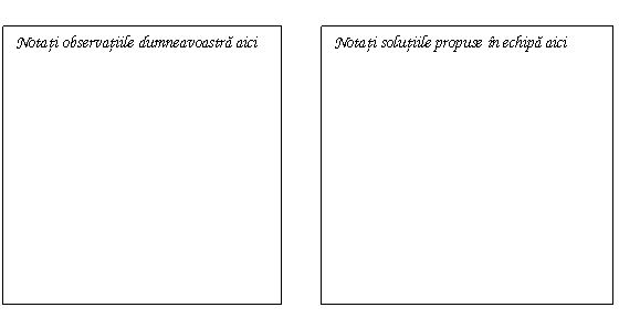 Pasul 1. Citeste cu atentie, īn ritm alert, materialul pe care ti l-a pus la dispozitie coordonatorul activitatii de seminar (din Anexa 2). Noteaza īn spatiul alocat mai jos tot ceea ce consideri ca este important īn material, organizāndu-ti ideile ca si cum ar urma sa le prezinti colegilor. (timp de lucru 40 min)