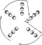 Jucatorii se impart in doua echipe egale ca numar ,care se aliniaza fiecare pe o linie la o distanta de 5-6m una de alta.Jucatorii fiind asezati in aceasta formatie, se numara cate trei, formand in cadrul fiecarei echipe grupe de cate trei jucatori.