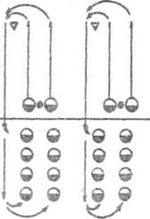 Daca clasa are multi elevi si terenul este mic, se vor face patru echipe care vor juca alternativ.