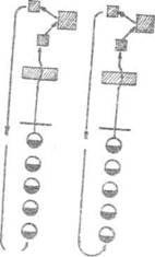 Jucatorii se impart pe echipe egale ca numar si se aseaza in flanc cate unul inapoia unei linii de plecare. Pe sol, la distanta de 3 m se marcheaza cate un cerc cu diametrul de 50 cm in care se aseaza primul jucator de la fiecare echipa.