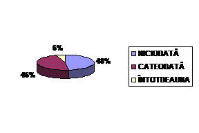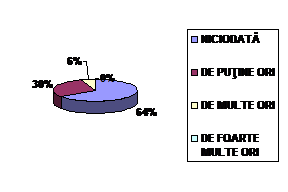 La intrebarea „ati participat la activitati in care elevii si-au impartasit experienta scolara comunitara cu elevi din alte localitati” se constata ca cea mai mare parte dintre cadrele didactice nu au avut astfel de experiente niciodata dupa cum se poate vedea: