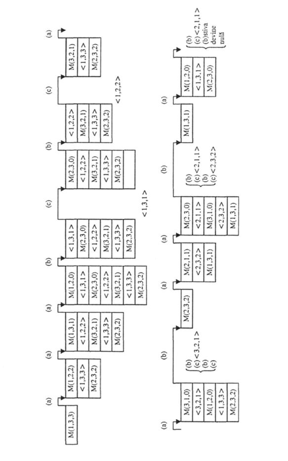În cazul iii) Se executa efectiv mutarea indicata, se trece aceasta pe lista de iesire (care va constitui în final solutia problemei) si apoi se procedeaza ca mai înainte.