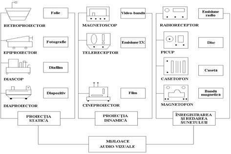 O parte din mijloacele prezentate mai sus devin utilizabile prin intermediul unei aparaturi tehnice deosebite. Acestea alcatuiesc asa numitele mijloace tehnice audio-vizuale.