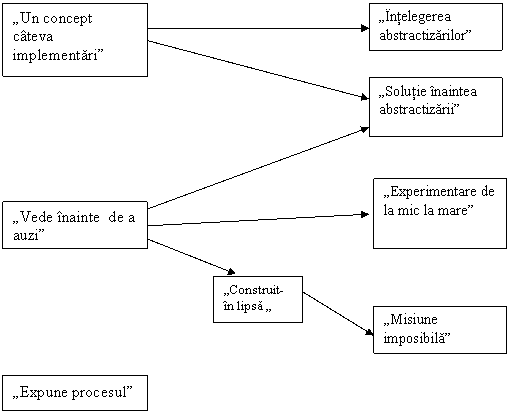 la început se discuta noul concept, la nivelul cel mai înalt de abstractizare, împreuna cu toata clasa, fara a se explica detaliat, pentru a asigura suportul teoretic necesar întelegerii conceptului în ansamblu;