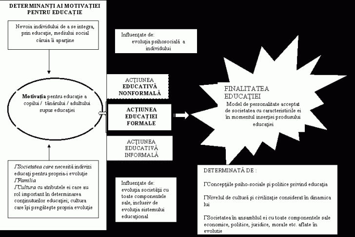 Orice demers educational formal (sau nonformal) isi are ratiunea in faptul ca este proiectat pentru a se obtine un anumit produs, cu o anume configuratie structurala si cu anumitti parametri calitativi ai realizarii fiecarui element din structura produsului respectiv; acesti parametrii sunt fixati prin standarde bine definite. Astfel, la finele ciclului primar, de exemplu, trebuie sa se obtina o anume configuratie a structurii de personalitate a elevului, specifica posibilitatilor normale de dezvoltare ale varstei de X ani (11 ani in sistemul nostru de invatamant) care trebuie sa releve un anume nivel de dezvoltare : intelectuala, estetica, etica, vocationala si corporala a elevului, dezvoltare reflectata atat in structurile atitudinale ale personalitatii elevului cat si in cele aptitudinale si chiar in gradul de elaborare a controlului asupra manifestarilor temperamentale. Este vorba de un "portret" exprimat in competente de diverse tipuri ale elevului ce urmeaza sa intre in ciclul gimnazial, care in limitele normalitatii pot inregistra ele insele grade diferite de elaborare (exprimate in standarde). Competentele reprezinta tinta catre care se indreapta procesul educational in perioada de referinta (in cazul exemplului dat, ciclul primar). Acesta tinta poarta denumirea generica de "finalitati" ( in exemplul de fata ale ciclului primar)