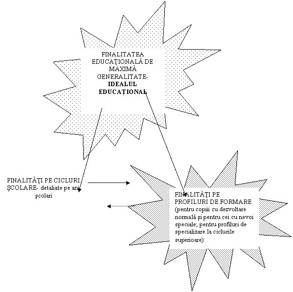 Astfel, finalitatile pot fi definite ca un concept pedagogic ce desemneaza produsele demersurilor educationale pe diferitele lor trepte de derulare (ciclu scolar generic, cicluri scolare, ani scolari, discipline pe ani scolari cu integrare in cicluri scolare etc.).