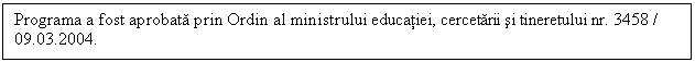 reperele impuse de OMECT 5723/23.12.2003 privind aprobarea Planurilor cadru de învatamânt pentru clasele a IX-a si a X-a;