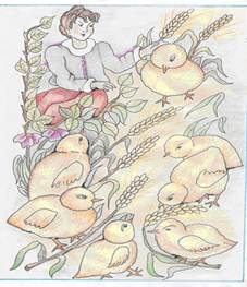 a) "- Dragii mamei copilasi! Eu ma duc in padure ca sa mai aduc ceva de ale mancarii. Dar voi, incuieti asa dupa mine, ascultati unul de altul, si sa nu cumva sa deschideti pana ce nu-ti auzi glasul meu. Cand oi veni eu, am sa va dau de stire, ca sa ma cunoasteti, .."