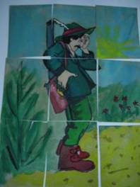 Descoperirea personajelor povestii prin ordonarea corecta a pieselor unui puzzel pe care-l vor primi fiecare pereche intr-un pliculet.(F3) |