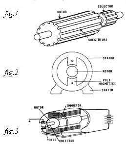 Motorul electric este un dispozitiv care transforma energia electrica in energie mecanica. Functionarea sa se bazeaza pe interactiunea dintre campul magnetic produs de un magnet permanent si curentul din spirele unei bobine plasate in campul magnetic. Principalele componente ale unui motor electric de curent continuu sunt (figura 1, 2, 3):
