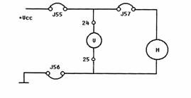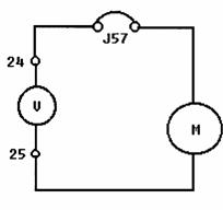 Conectati puntile J55, J56, J57 si voltmetrul intre punctele 24 si 25 pentru a realiza circuitul din figura de mai jos: