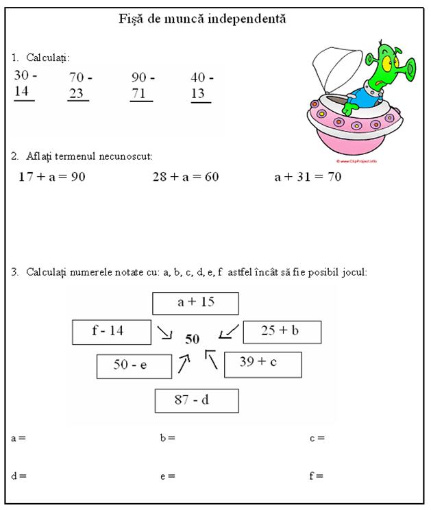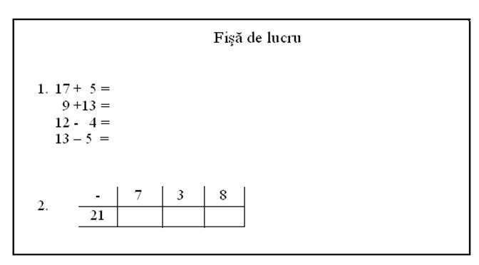 *Capacitatea elevilor de a utiliza corect operatia de scadere in rezolvarea fisei de lucru |