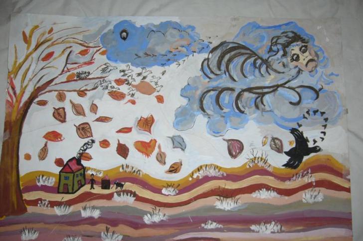 Pe tabla este descoperit un peisaj de toamna, in care se regasesc fenomenele naturale prezentate la retroproiector. - Atat plansa, cat si informatiile prezentate de colegii nostri, catre ce anotimp va duc cu gandul? - Exista o poezie cu aceasta tema studiata de voi? |