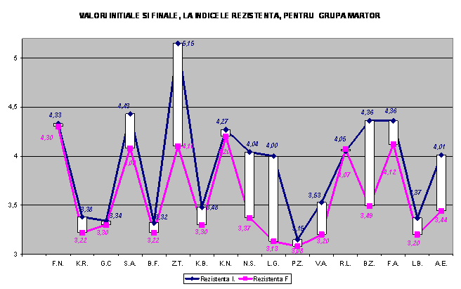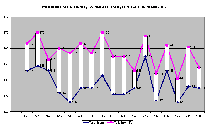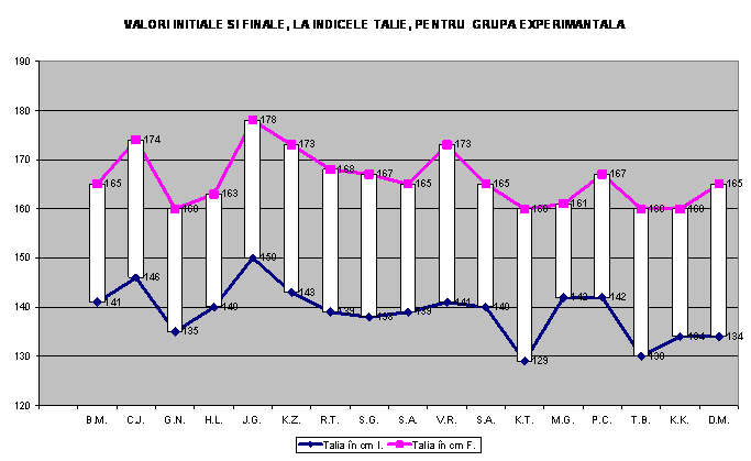 Cu evolutia datelor inregistrate la indicii aptropometrici si S.U.V.A. la grupa experimentala