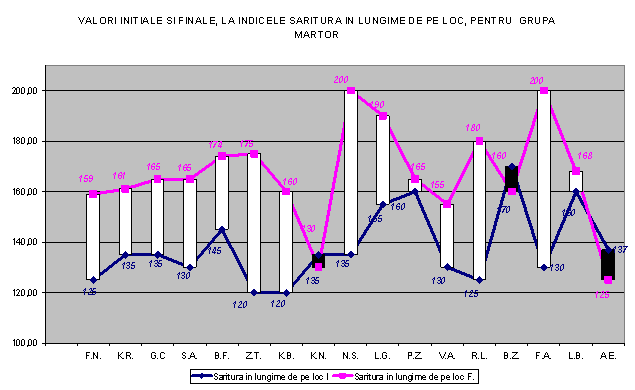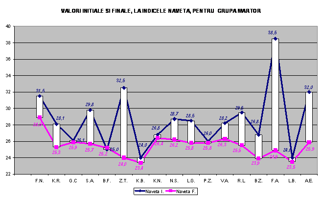 Cu evolutia datelor inregistrate la indicii aptropometrici si S.U.V.A. la grupa martor