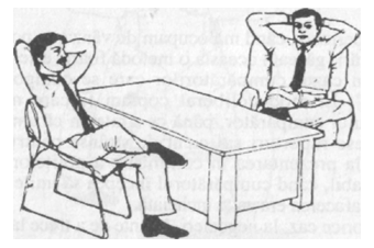 Capul mesei este ocupat lot de el, acest loc fiind, de cele mai multe ori, cel mai îndepartat de usa. Daca presedintele va recurge la gestul mâinilor Ia ceafa (Figura 96), subalternii îl vor imita.