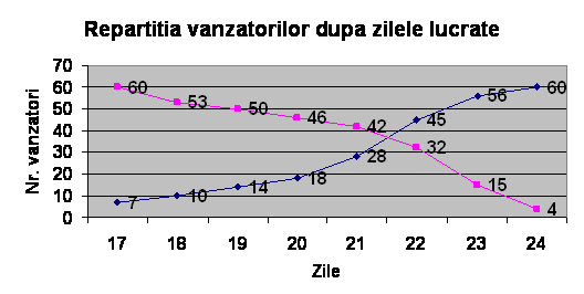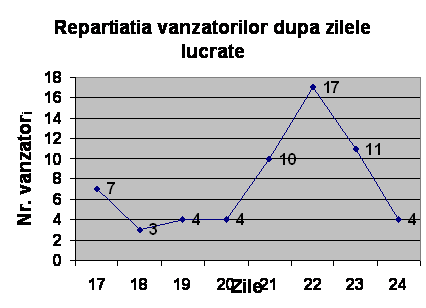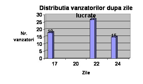 Repartitia vanzatorilor dupa numarul zilelor lucrate