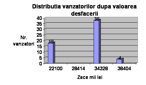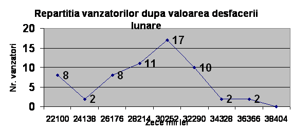 Repartitia vanzatorilor dupa valoarea desfacerii lunare (zece mii lei)