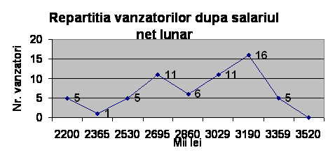 Repartitia vanzatorilor in functie de salariul net lunar (mii lei)