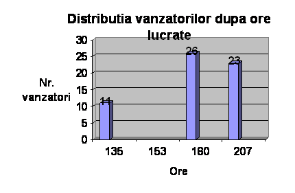 Repartitia vanzatorilor dupa numarul de ore lucrate