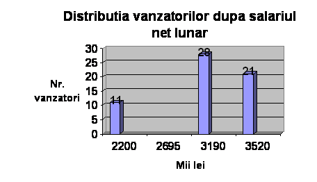 Grupe de vanzatori dupa salariul net lunar (mii lei) |