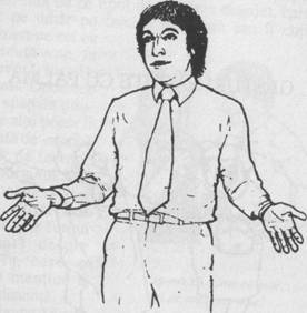 emotii similare. De exemplu, când oamenii doresc sa arate ca sunt deplin sinceri si onesti, întind una sau amândoua palmele deschise catre celalalt, ca si cum ar spune ceva de genul urmator: "Permiteti-mi sa fiu absolut sincer" (Figura 16). Când cineva se destainuie sau se manifesta sincer, îsi etaleaza integral sau partial palmele în fata celuilalt. Ca si cea mai mare parte a limbajului trupului, si acesta este un gest complet inconstient, ceea ce ne da senzatia sau banuiala ca respectivul spune adevarul. Când un copil minte sau tainuieste ceva îsi ascunde palmele la spate, în mod similar, sotul care vrea sa tainuiasca ceva îsi ascunde palmele în buzunare sau le tine într-o pozitie de încrucisare a mâinilor, în timp ce încearca sa se explice, într-o asemenea situatie, tocmai palmele ascunse pot trezi banuiala nevestei ca sotul nu spune adevarul.